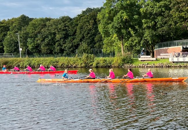 Im Rahmen des Lingener Altstadtfests wurde der Kanal zum Schauplatz eines sportlichen und emotionalen Highlights: 55 4er-Teams aus Unternehmen, Familien, Freundeskreisen und sozialen Einrichtungen sowie Krankenhäusern gingen bei der Benefizregatta an den Start – und ruderten mit Herz und Teamgeist für krebserkrankte Menschen.